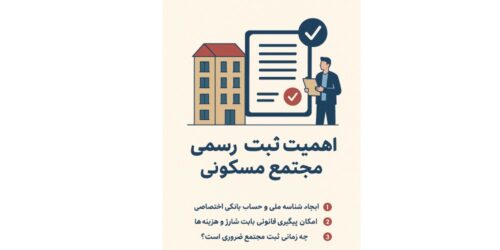 ثبت رسمی مجتمع مسکونی شاید در نگاه اول یک فرآیند اداری ساده به نظر برسد، اما در حقیقت کلید تحقق مدیریت شفاف، قانونی و ساختاریافته ساختمان است. با ثبت مجتمع، کلیه فرآیندهای مالی و قانونی در چارچوبی رسمی قرار میگیرند که از تعارضات احتمالی پیشگیری میکند.
